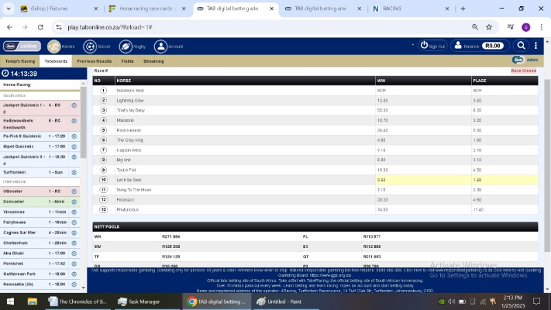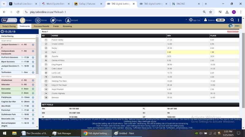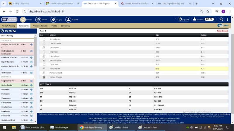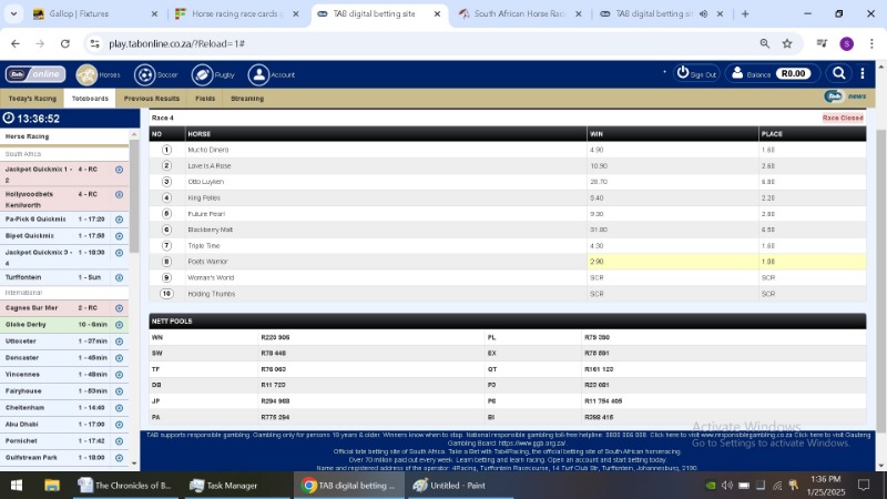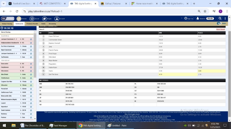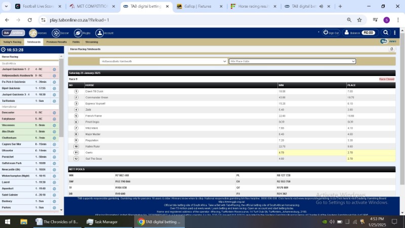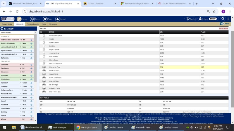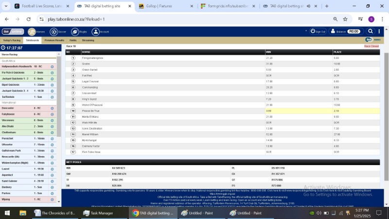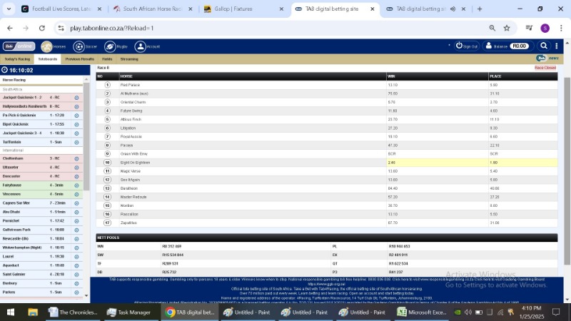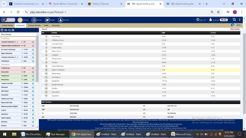 After each race jumped and the site said closed i took a screen shot of the TAB figures. I then took a second shot after the race had finished.