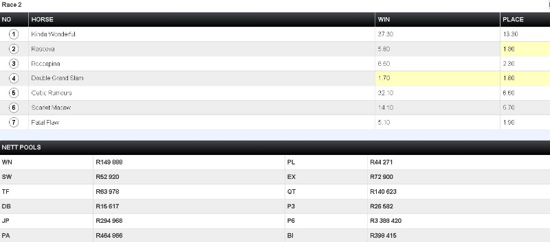 I agree TAB online have a problem - biggest discrepancy imo Zeits - only paid R6 odd a win .....