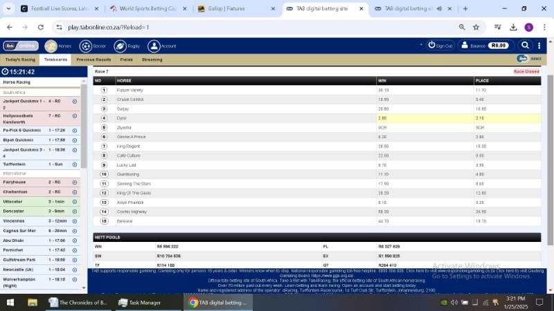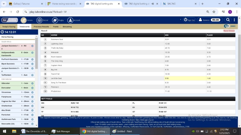 Yesterday i decided to follow each race as i had a few bets and a pick six on the site.