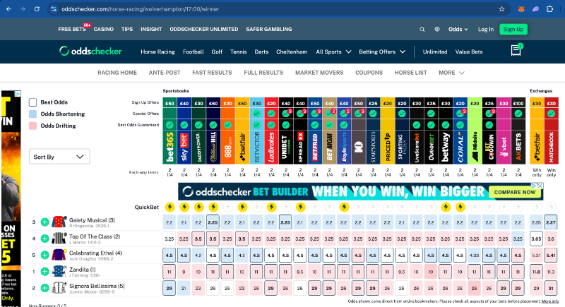 Does anyone know of a website/tool that lets you quickly see the best odds for different horses?