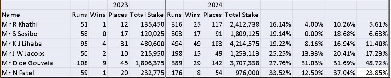 .....Sly the Robert Khathi saga was well documented on this site.... got a 4 month suspension for so called hooking a Plattner horse in KZN....when he was simply trying to control and not fall off an unruly horse.....he finally won his appeal in the KZN Supreme court but still lost his job with the stable.....he seems to have fallen off the face of the earth....