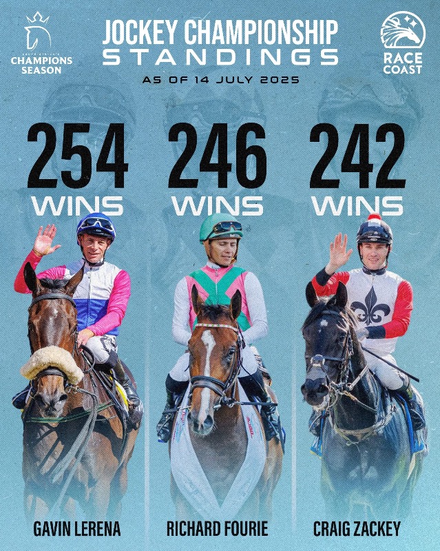 1025 rides Lerena 254 wins 33.7 million stakes. this season 4GR1s