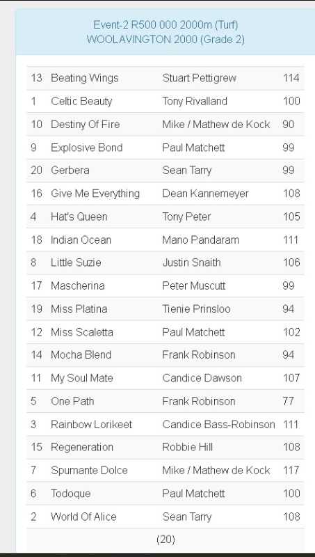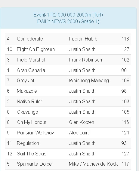 One of the strongest fields for ages - 2 horses rated 127...Met and Cape Derby winner - SA Classic Winner and 4th place Gauteng Fillies Guineas Winner and Gauteng Colts Guineas winner -Makes last year's race look like a B Div...especially as most of those horses have hardly trained on - There is no good reason to contest this race if you can't win and want the July - Snaith has the stock to destroy their ratings - other trainers may only have one July 3yr old - History proves that going for this race with sub-par animals is career destroying -see Street Art River Romeo etc - If I owned a Gr 1 winning 3yr old that is a July horse there is no way I would go for this race and have my rating killed -