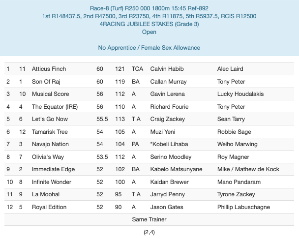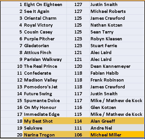 From now to the July, 3 weeks to go, no other horse can really be added to the mix. Garrix had a tough campaign, it raced 3 times in few weeks. If they not worked him to the bone he could of been a late entry, but now that horse has an extra 2 races under his clock. He will be fresh for the Cape, and it won't surprise me if he makes a turn for the Jhb weak summer cup with big cash on offer.