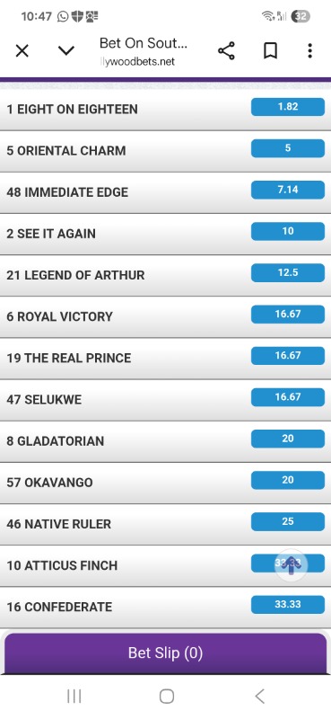 10 months 1 week agoFor the main race 8 on 18 won't lose ..best to get on to early price ...there was a huge fight at the course between tarry and Fourie..tarry wanting Fourie to ride his horse...Fourie refuses says his staying on 8on18...tarry trying to get Lyle hewitson to come down from Hong Kong.. I think 8on18 should win this by 3lths