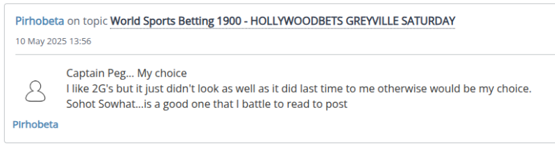 Re: HOLLYWOODBETS GREYVILLE SATURDAY 24 MAY 2025