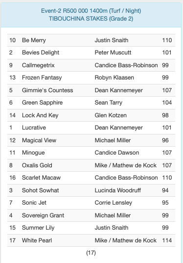 Re: ENTRIES HOLLYWOODBETS GOLD CHALLENGE
