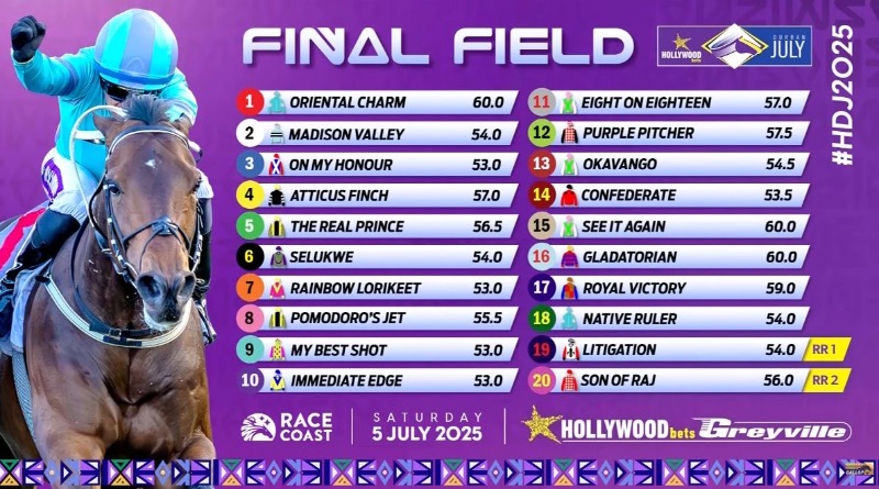 Two horses race...can Oriental Charm run pillar to post with 60kgs over 2200m. I can't see it. Yes he haz draw 1, but I think Snaith wouldn't want 8/18 on the inside rail as he will make his run and loop the field, infact i think it's ideal draw for a replay of the Daily News is a draw between 8 to 12.