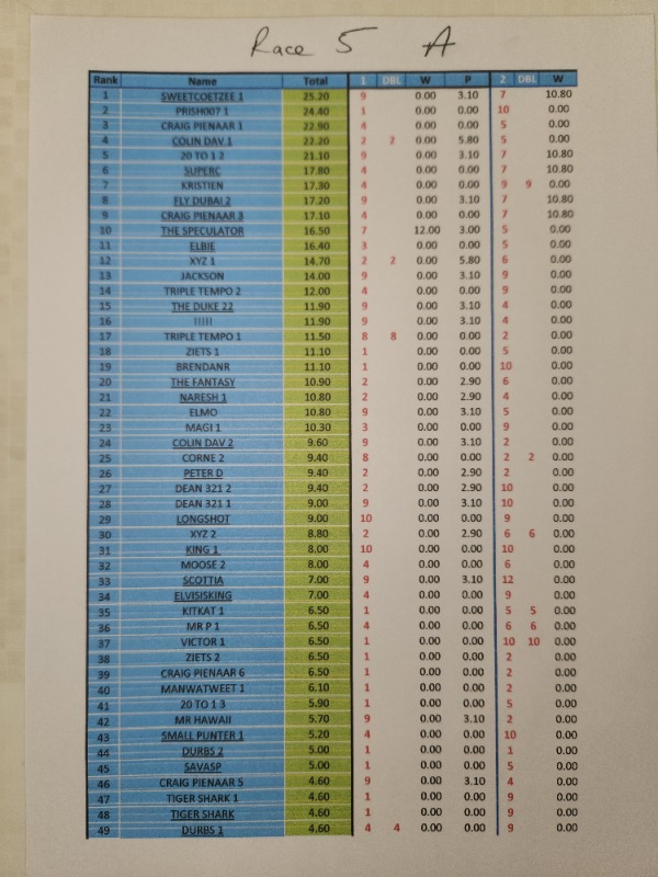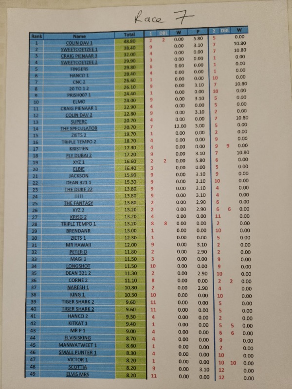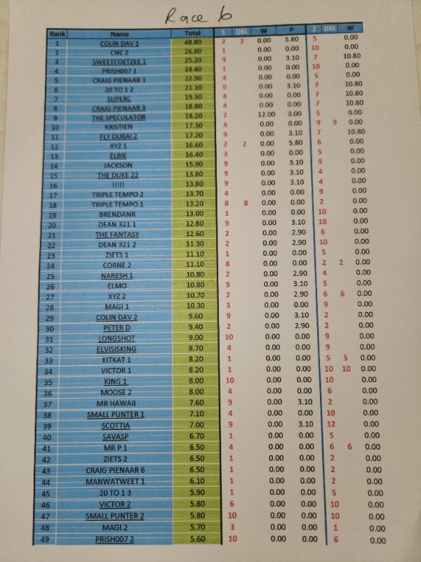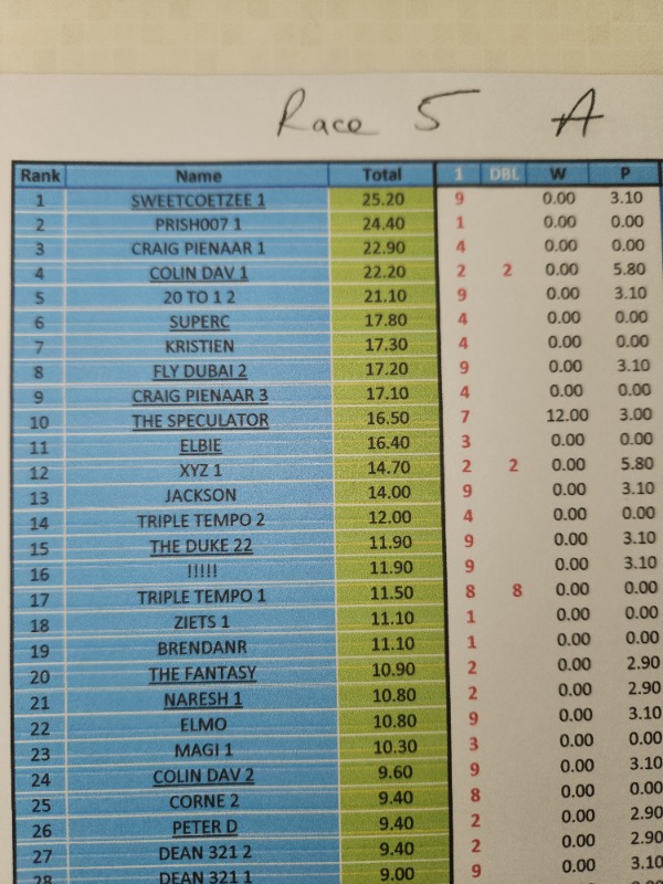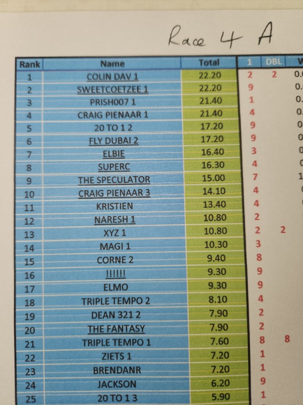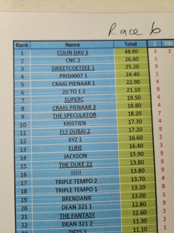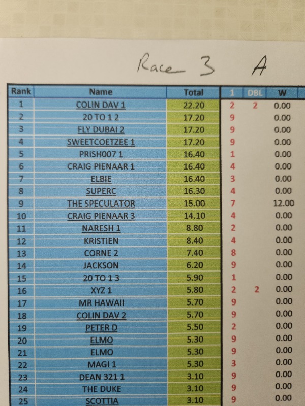 Re: RESULTS - COMPETITION DURBAN JULY