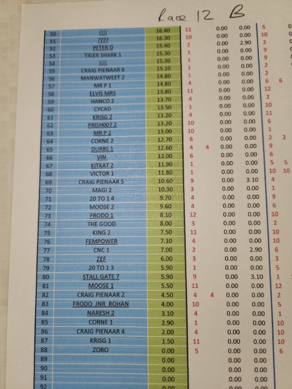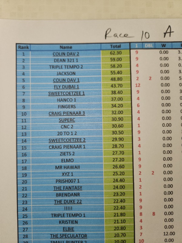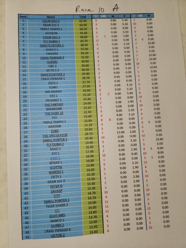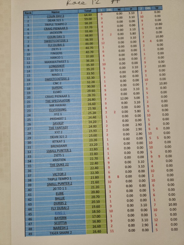 so basically won NIL on the JULY RACE...... but picked up 2 x 1st place in the draw,,,,,,, not too shabby - made a profit overall, so I;m happy