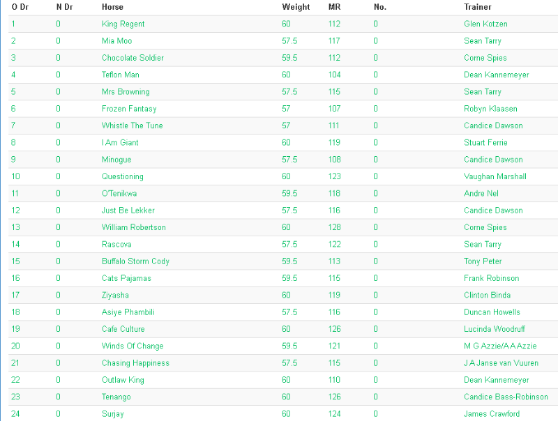 See there has already been support for Golden Palm in the Thekwini Stakes, open 5/2, shortened into 16/10. Greeff has some smart juveniles.