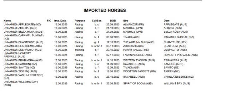 Re: Some horses imported from Oz and NZ 1 AUGUST 2025