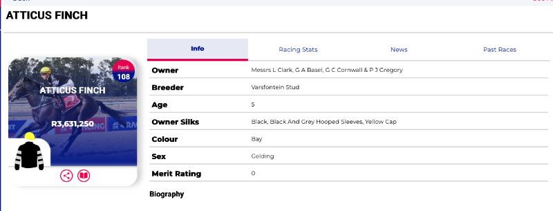 2️⃣ Enter the horse’s name in the search bar.