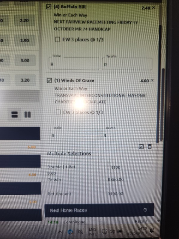 One thing I pointed out. Trixie bet taken. One cannot see the dbls and payouts. I called into the help line the staff were as dazed as me. I choose peace.