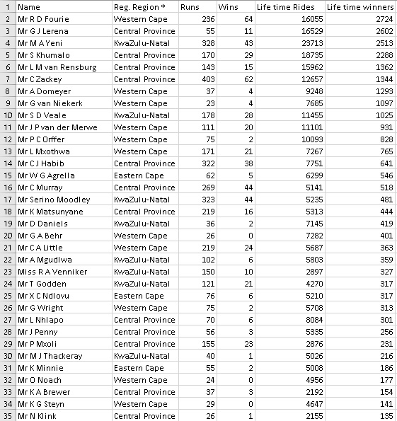 Current SA Jockeys - All-time stats SA races only