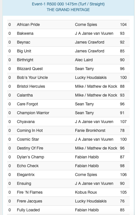 Re: 54 Entered for the World Sports Betting Grand Heritage