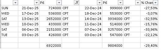 3 months 4 weeks ago - 3 months 4 weeks agoI have attached the turnover for CPT December 2025 and 2024. Comparing like for like meetings in the calendar.