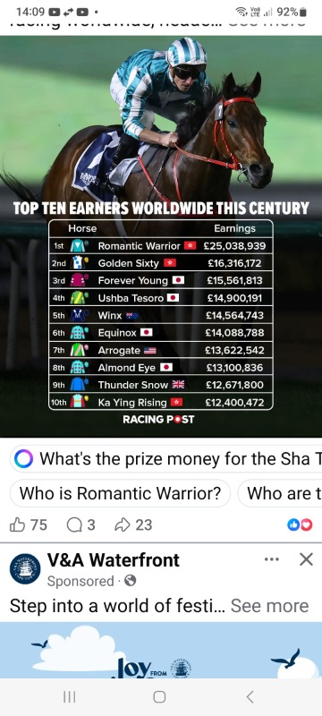 Romantic Warrior — after his 21st career win, the first leg of the Hong Kong Triple Crown, now sits on career earnings of around £23 million (R506 million).