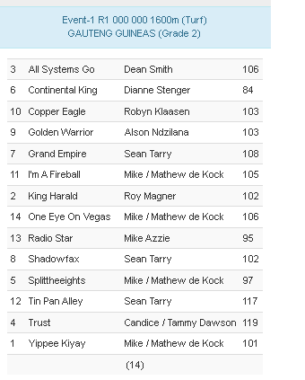 Re: 2026 Gauteng Guineas Male and Female - Nomiations