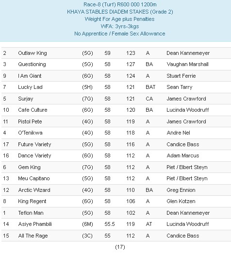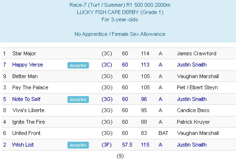 Lucky Fish Cape Derby 28 Feb 2028. Nominations