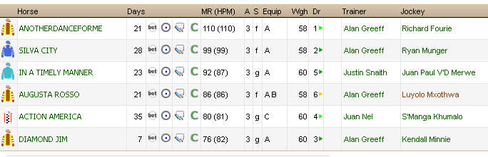 The race is on 20 March 2026 over 1600m. It is a15 horse field of which Alan Greeff has 10 runners.