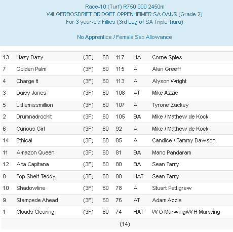 Re: 4 April 2026 Nominations Premiers - 3 Grade 1s and the Grade 2 SA Derby
