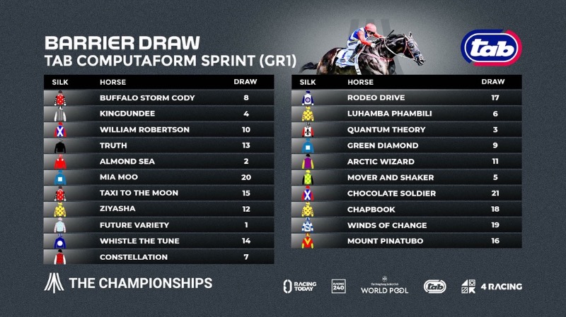 It comes as no surprise that Ryan Munger will be riding Corne Spies’s charge, William Robertson, in the Grade 1 TAB Computaform Sprint. The 17-time winner is the defending champion, but he will have to face Peter-trained Buffalo Storm Cody, the highest rated horse in the country, this time. Buffalo Storm Cody has the services of Richard Fourie for the big race.