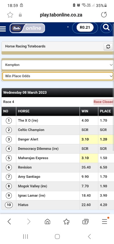 As one would have seen, there was a "joint" tote favourite at R3.10.