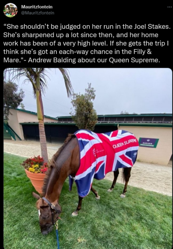 Queen Supreme would be delighted if it won but a rather optimistic entry IMO