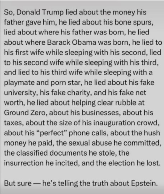 You cannot argue with the fact that Donald Trump's regime is absolutely hideous and Fascist - they have death squads marching through the cities of American cities. The forces of law and order will murder people in the streets, secure in the knowledge that they will be protected by him, until they are not. He is weaponizing dishonesty andΒ